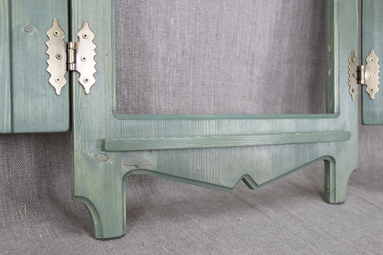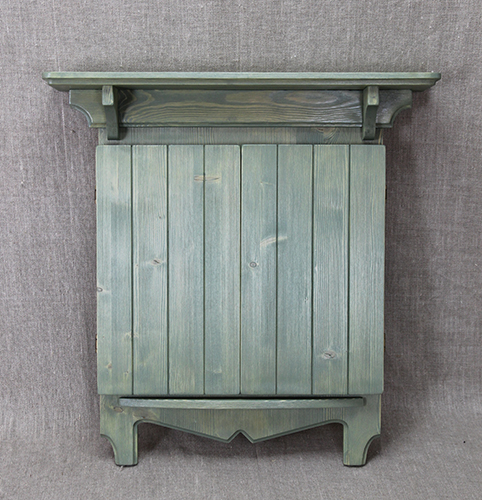 ширина 60 см (по полочке), высота 63 см; с распахнутыми ставнями ширина 92 см; размеры внутреннего пространства 36х36 см; глубина полочки 12 см |