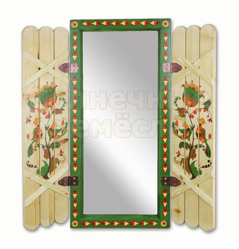 Главная /Роспись по дереву / Зеркало в раме со ставнями "Борецкие мотивы"