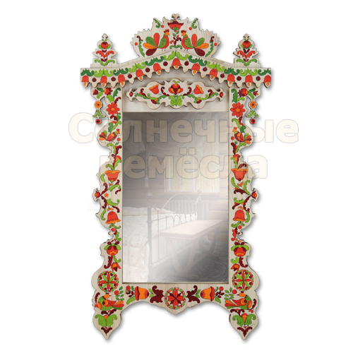 Главная /Роспись по дереву / Зеркало в расписной раме "Узоры Русского Севера"