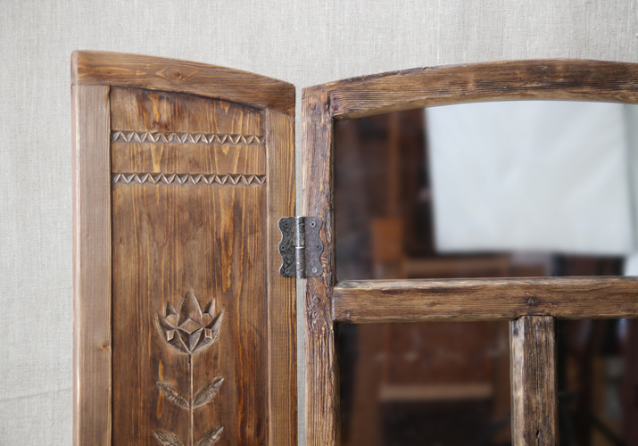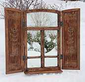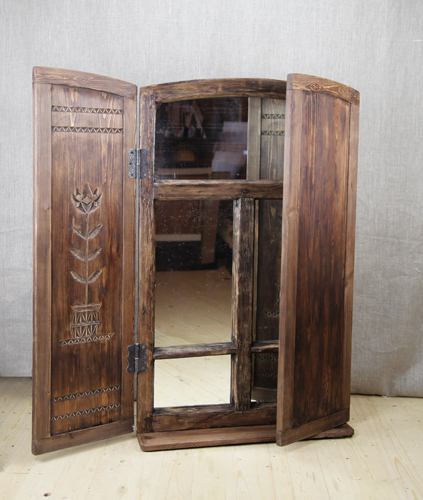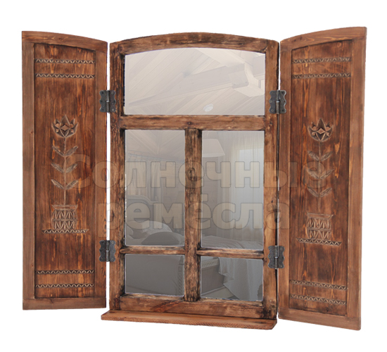 Зеркало-окно с резными ставнями "На окошке два цветочка..." |