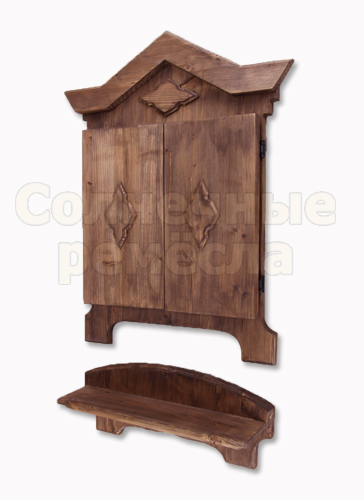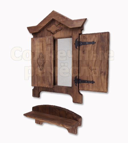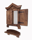 Комплект "Теремок": зеркало со ставенками и полочка. Т.к. полочка навешивается отдельно, она не мешает закрывать/открывать ставенки.
