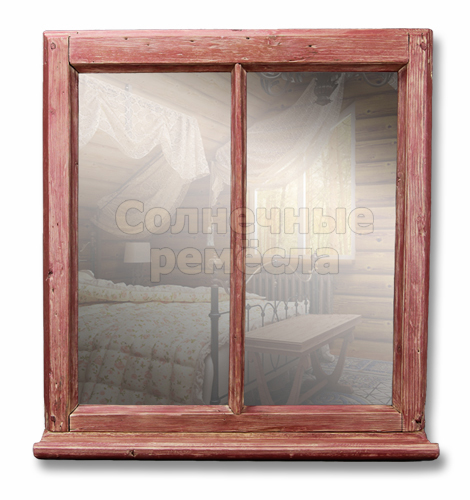 реставрированная деревянная оконная рама деревенского дома 60-х годов ХХ века |