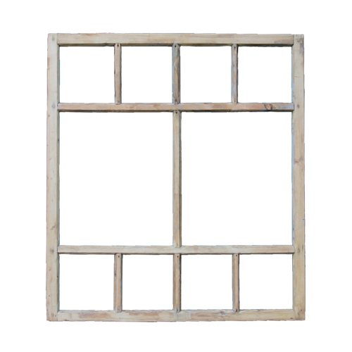 Мы нашли чудесный материал для воплощения формы – старые оконные рамы деревенских домов прошлого века. Грамотная бережная реставрация, при необходимости авторская покраска – и возрожденная рама готова к новой жизни. Старинная, с теплом и притягательностью старого дерева!